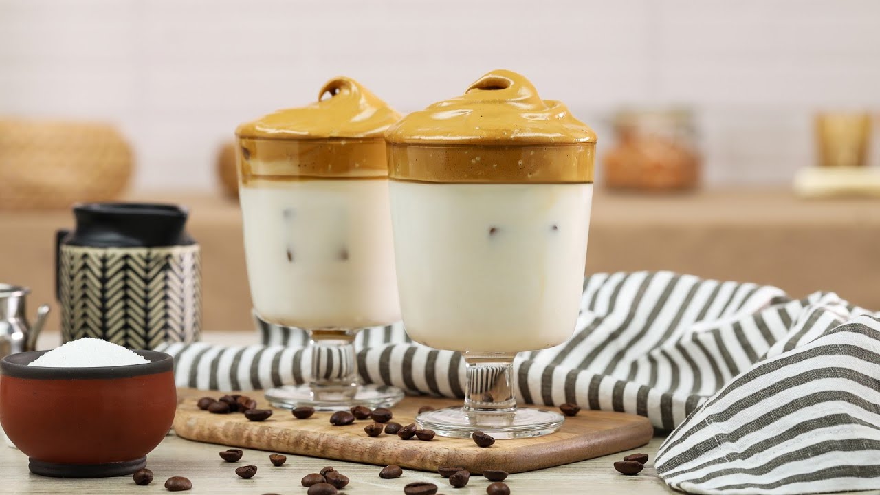 1. توضع القهوة، والسكر، والماء الساخن في وعاء ويخفق لمدة 5 دقائق أو حتى تتكوّن قمم ناعمة.